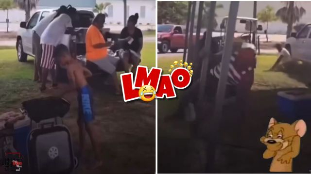 Kid puts fireworks on the grill as a prank